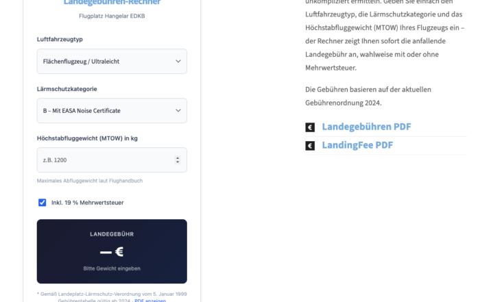 Neu: Landegebühren-Rechner